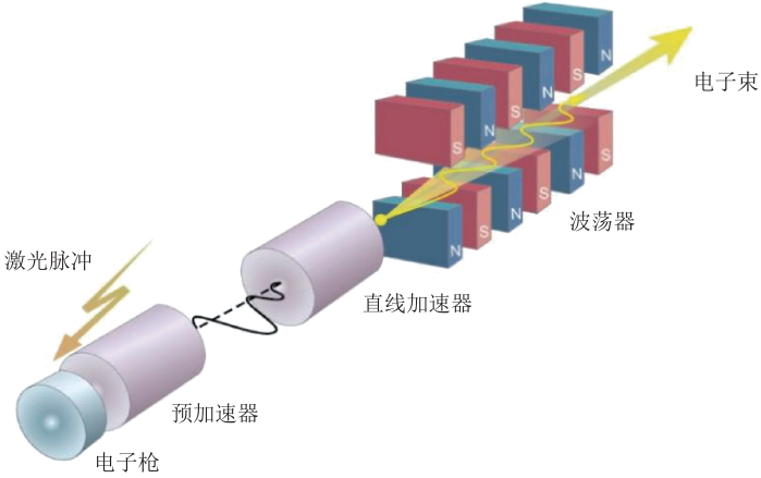 同步輻射光源正在經歷從第三代到第四代的跨越。第四代同步輻射光源是基于衍射極限儲存環技術,亮度將比第三代光源提高幾百倍以上,相干性更好,對世界科技變革的影響難以估量,已成為當前國際競爭的熱點。高亮度光源發展的另一條技術路徑—自由電子激光的發展,使得人類能夠在原子分子水平上動態認識世界。自由電子激光的原理是通過自由電子和光輻射的相互作用,電子將能量轉送給輻射而使輻射強度增大。自由電子激光的發展將為多學科提供高分辨成像、超快過程探索、先進結構解析等尖端研究手段,必將有效推動諸多學科領域的基礎和應用研究的發展(圖5)。