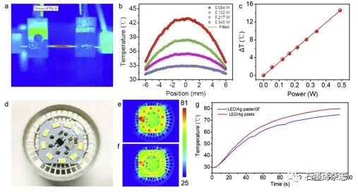 隨著微電子集成與組裝技術的飛速發展以及高功率密度器件的集成使用,發熱量和耗散功率密度變得越來越大,嚴重影響電子元器件的穩定性和使用壽命,因此散熱問題變得極其重要。傳統的導熱材料以主要以金屬薄膜、石墨壓延膜、碳化聚酰亞胺膜等為主。金屬薄膜存在質量重、易腐蝕、導熱率不高等缺點,而石墨壓延膜和碳化聚酰亞胺膜質脆,使用過程中易掉粉,不適用于結構復雜的、潔凈度要求高的精密儀器管理領域。另一方面,傳統的碳化聚酰亞胺膜通常是采用間歇式作業生產,石墨化過程需要消耗大量的時間(加熱時間至少6~10 h,冷卻時間至少10 h)和能源(實驗爐能耗至少50~70 KW/h)。石墨烯膜是一種新型的導熱、散熱材料,面內熱導率高,同時具有低密度、低熱膨脹系數、良好機械性能等優異特性,成為新興散熱材料的焦點。本文提出連續化電焦耳熱還原策略,設計并制備了基于輥對輥的電熱裝置,實現了石墨烯導熱膜的快速連續化制備,整個制備過程僅用時1 h,能耗低于3 KW。所制備的石墨烯薄膜結構均勻,取向性好,并且導熱率達1285 W/mK,導電率達4.2×105S/m。將制備的石墨烯導熱膜用于LED燈的熱管理,可以顯著降低LED燈背板的溫度,這對于提高LED燈的安全性能和延長使用壽命具有重要意義。