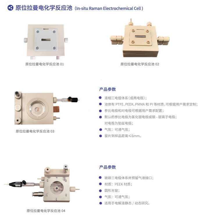 原位拉曼反應(yīng)裝置-原位拉曼電化學(xué)池,原位拉曼高溫反應(yīng)池,鋰電池原位拉曼測(cè)試池等。