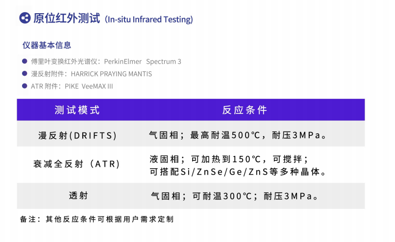 原位紅外測試服務 儀器基本信息 傅里葉變換紅外光譜儀:PerkinElmer Spectrum 3 漫反射附件:HARRICK PRAYING MANTIS ATR 附件:PIKE VeeMAX III 測試模式 反應條件