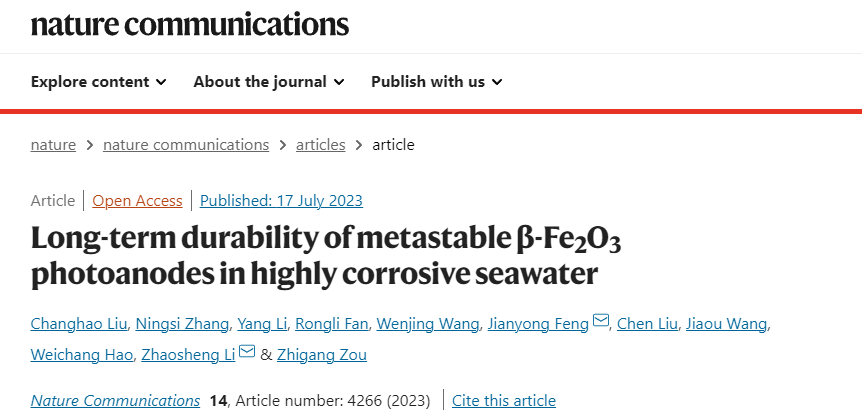 近日,南京大學現代工學院李朝升、鄒志剛團隊探索了光電化學分解海水過程中OH?和Cl?等離子參與β-Fe2O3表面重構的過程,并且利用晶格中的Sn增強金屬-氧相互作用的原理,抑制了過度的表面重構,在模擬海水電解液中穩定工作3000小時,獲得了目前報道的穩定性最好的海水分解光陽極材料。相關的工作以“Long-term durability of metastable β-Fe2O3 photoanodes in highly corrosive seawater”為題發表在Nature Communications上。