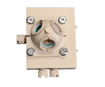 3、反應池腔帽有三個窗口,其中兩個為紅外窗口,另一個為石英窗口,用于引入外部光源(光催化激發光源)或作為觀察窗口使用;